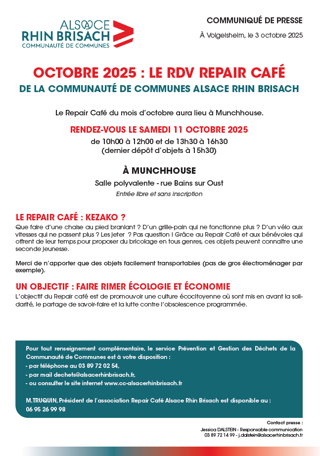 La mairie est informée que des équipes de vendeurs réalisent une campagne de démarchage à Munchhouse du 02/10 au 30/10/2025 (hors dimanche et jours fériés).