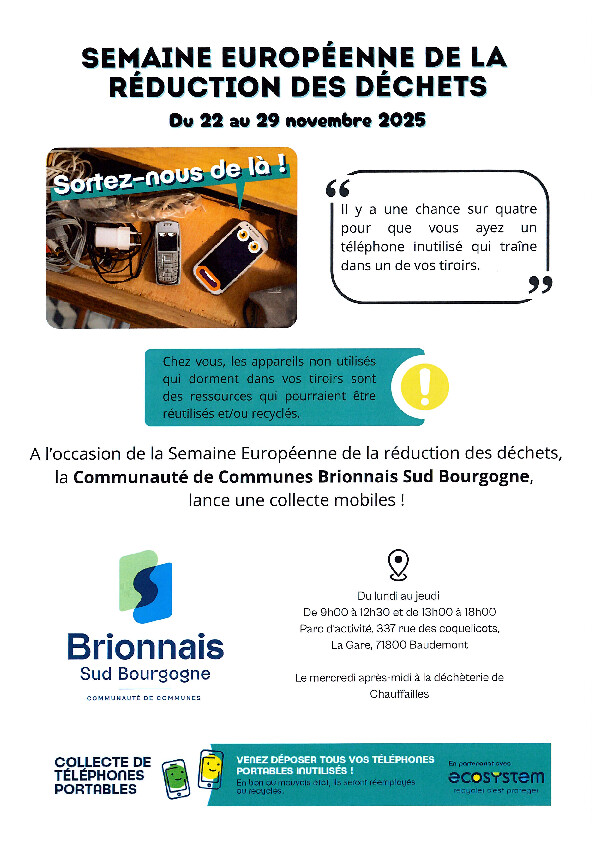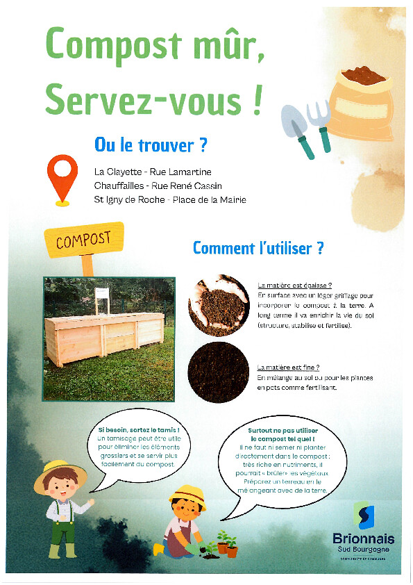 Tout ce qui ne peut pas être recyclé et qui ne tient pas dans votre poubelle doit être déposé en déchetterie (980 route des Etangs à Chauffailles ou 3 chemin de Combalon à La Clayette) de 9 h à 12 h ou de 13 h 30 à 17 h 30 (déchetterie de La Clayette fermée les mardis et jeudis).