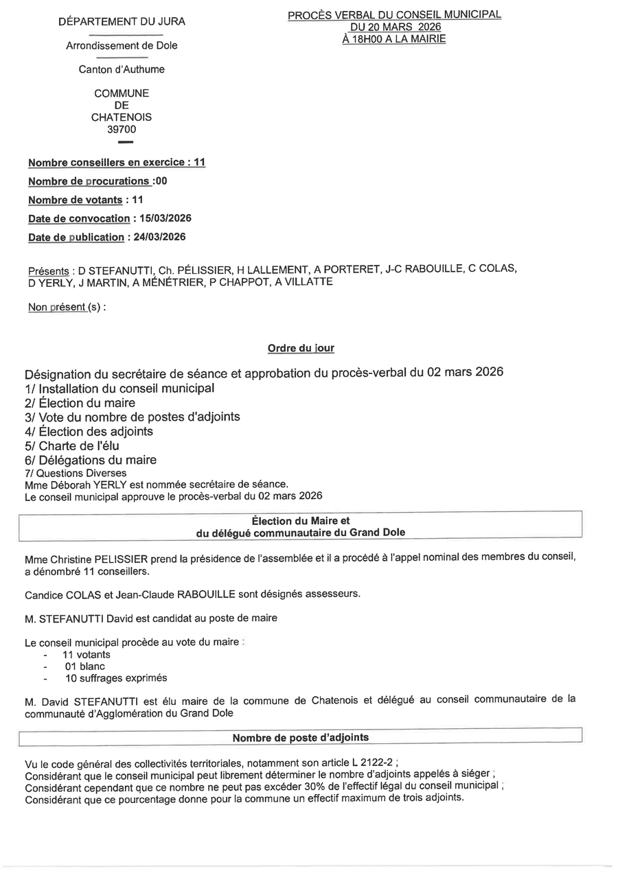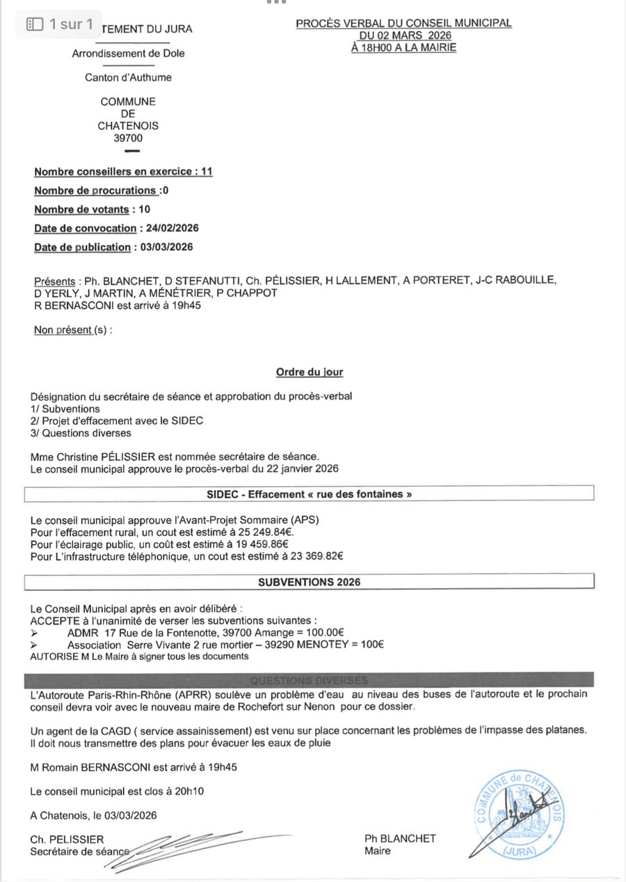 La prochaine réunion du Conseil Municipal aura lieu à la Mairie, le