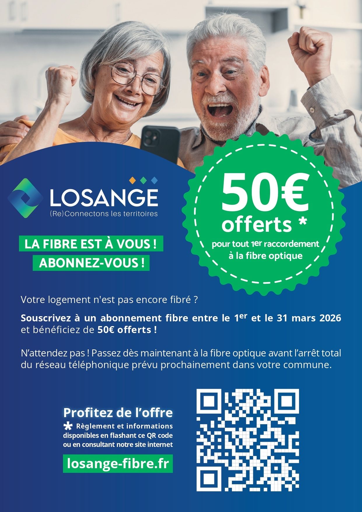 50€ seront offerts pour tout premier raccordement à la fibre optique (logements qui ne bénéficient