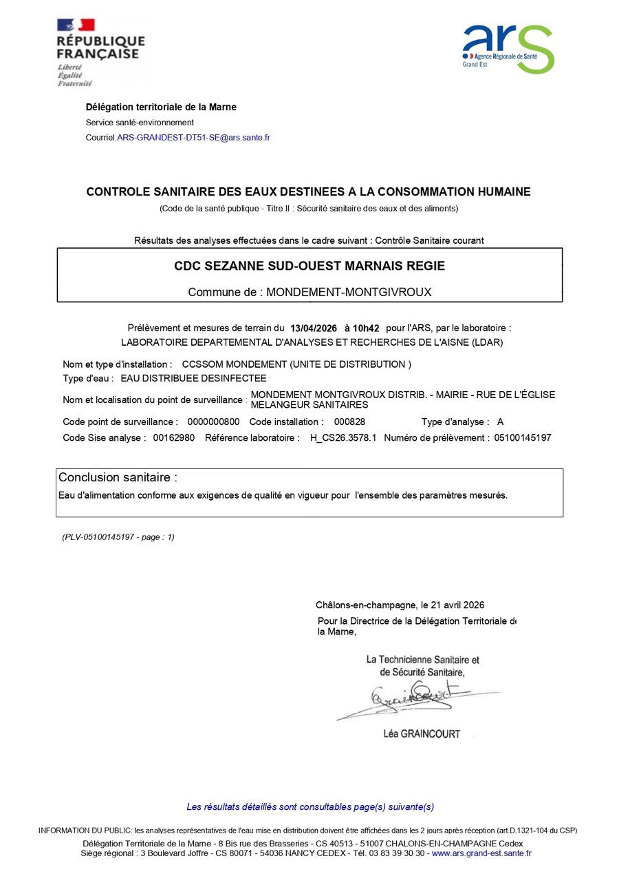 Veuillez trouver ci-joint le bulletin des résultats d’analyse réalisée dans le cadre