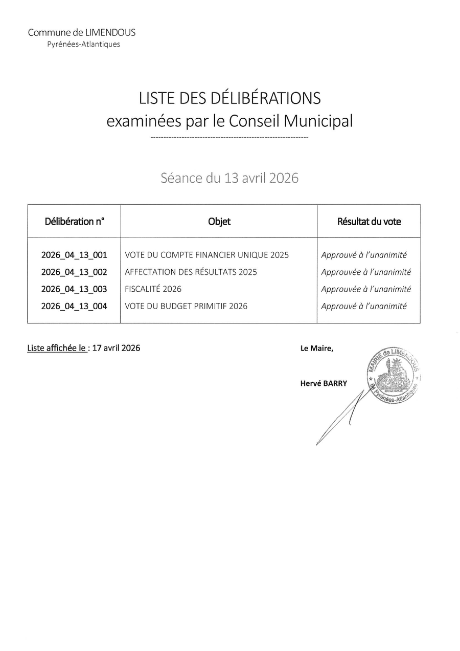 *Les arrêtés sont affichés à l'entrée de la mairie.
