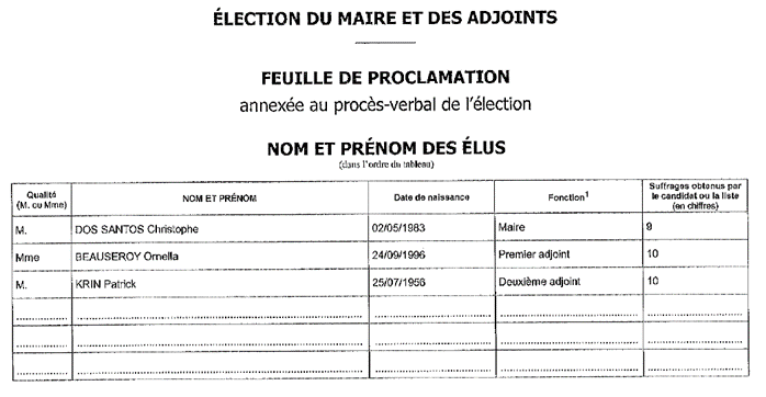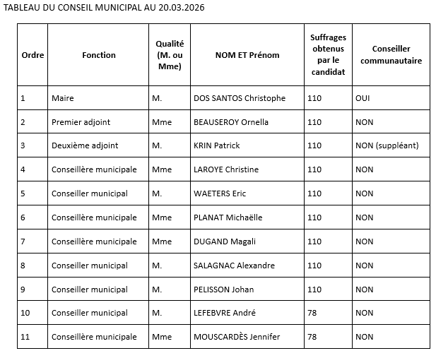 Résultats des élections du Maire et des Adjoints du 20.03.2026