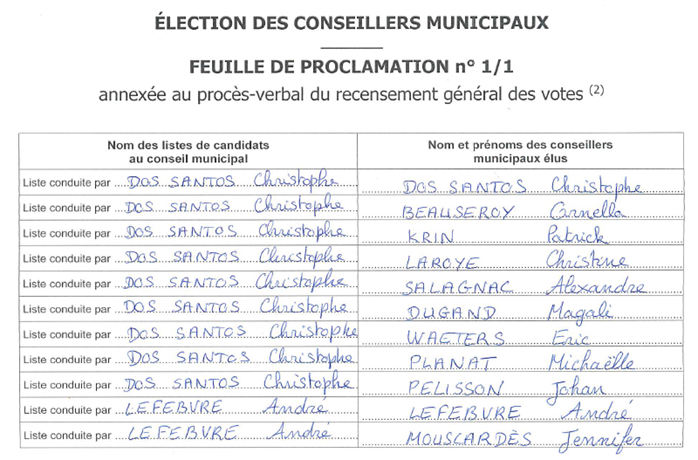 Nombre de bulletins nuls/blancs : 0