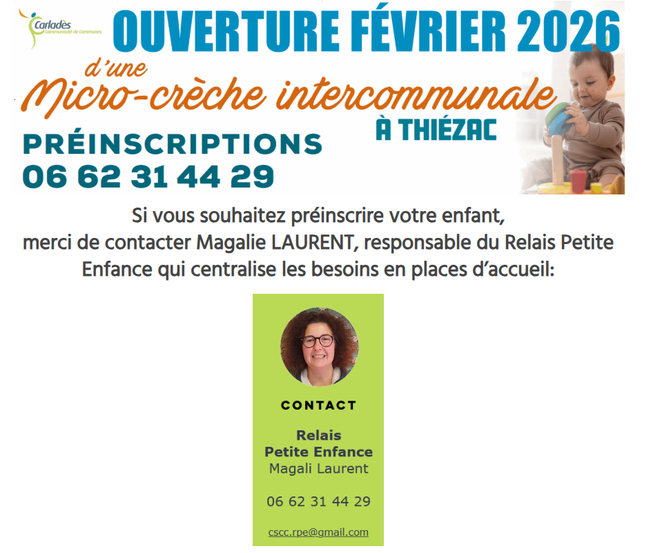 ➡️ Suite à l’obtention de la Délégation de Service Public (DSP) pour la gestion des micro-crèches de Thiézac et Polminhac, la Fédération ADMR du Cantal organise une réunion de présentation du projet micro-crèches.