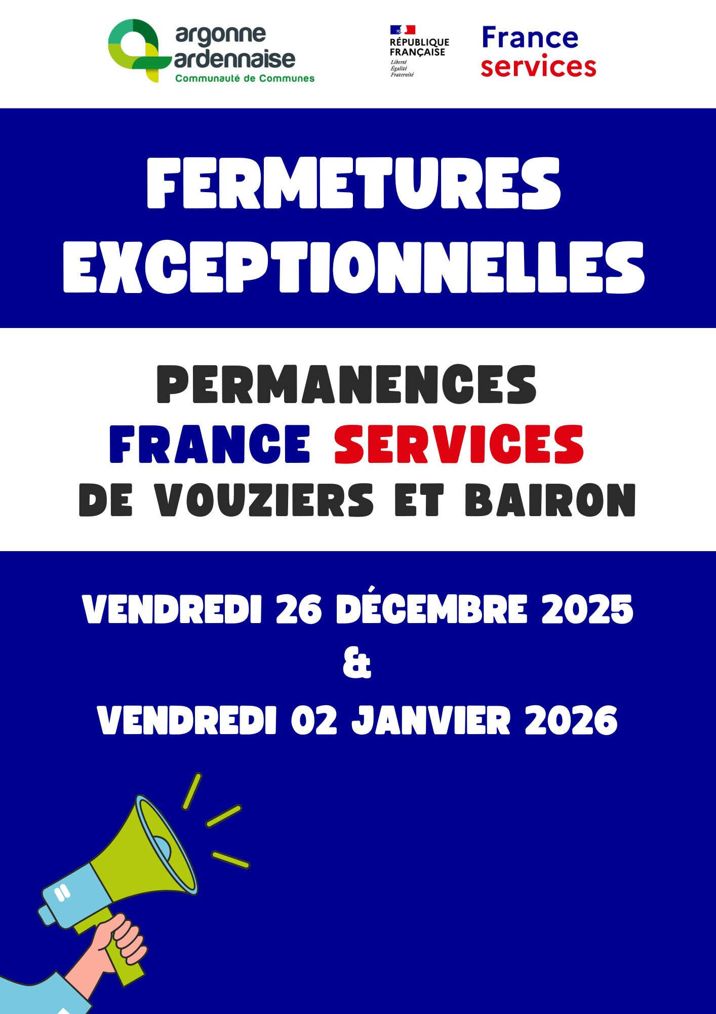 France Services Vouziers : les 26/12 et 02/01/2026