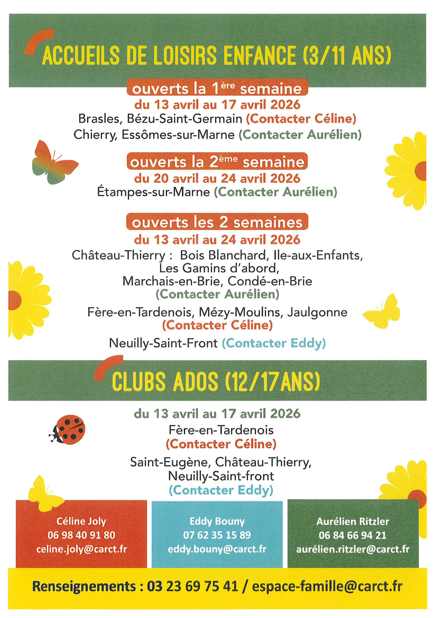 espace-famille@carct.fr ou au ☎️ 03 23 69 75 41 ainsi que sur nos sites d’accueil sur rdv.