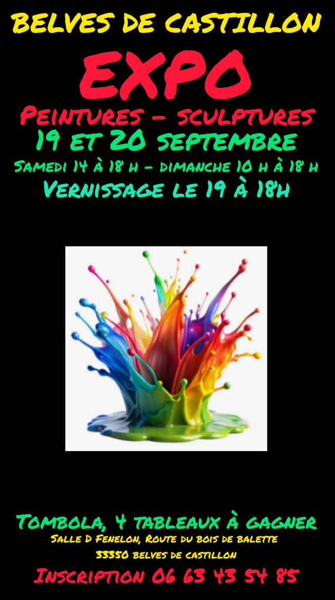 Nous organisons pour la 6eme année consécutive une exposition artistique (Peintures et sculptures) et nous recherchons des artistes confirmés ou amateurs passionnés pour exposer leurs œuvres dans une ambiance conviviale et accessible à tous. Vous serez les bienvenus pour exposer vos œuvres et partager votre univers avec le public