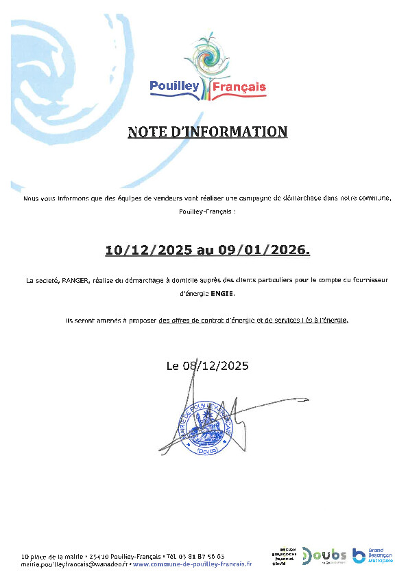 10 place de la Mairie 25410 Pouilley-Français
