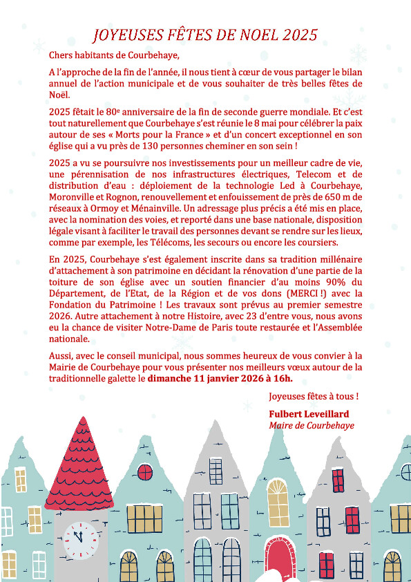 Avec l'ensemble du conseil municipal et des employés municipaux, nous vous présentons nos meilleurs vœux pour 2026 !