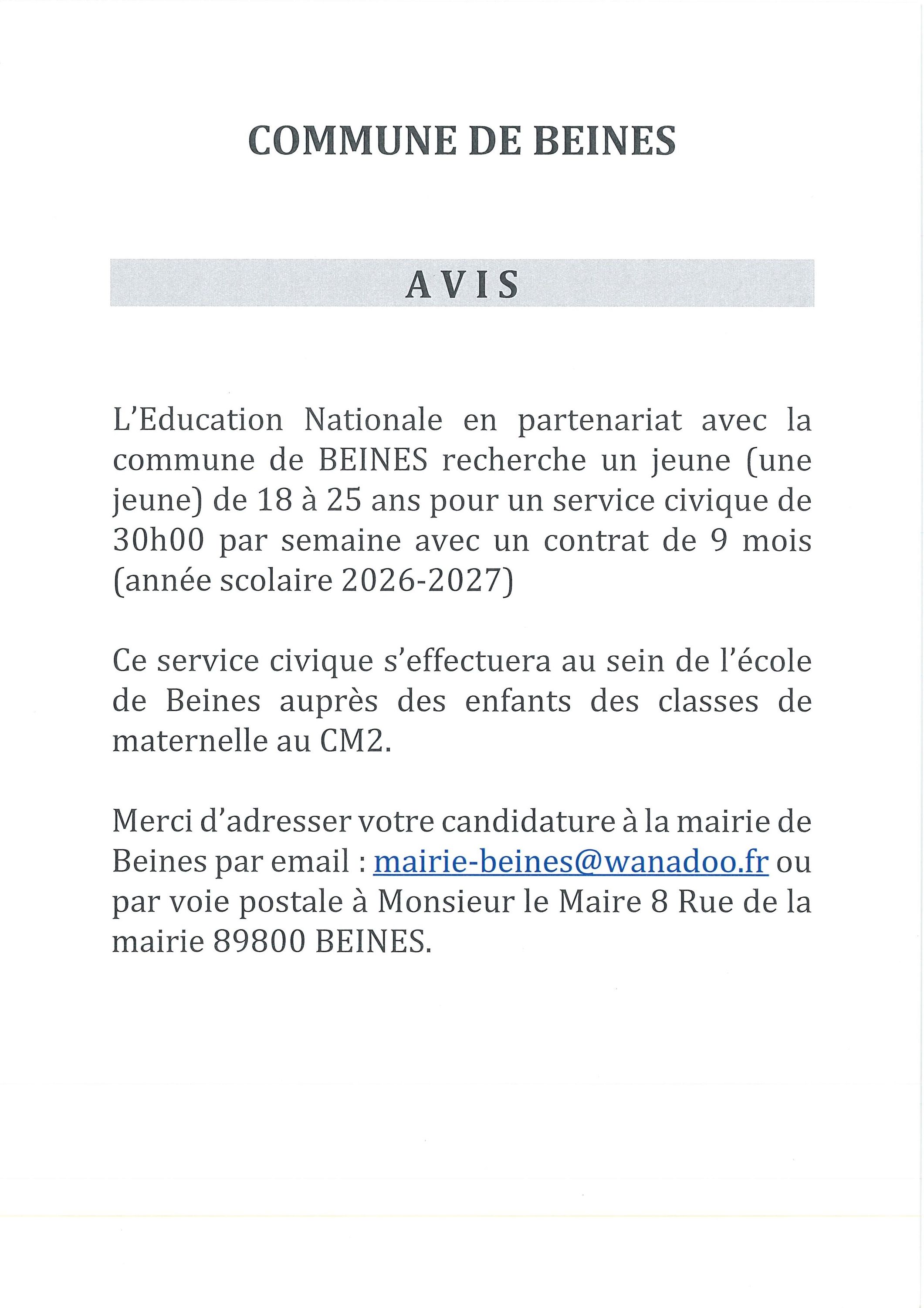 En cas d'urgence, contacter le Maire ou les adjoints.