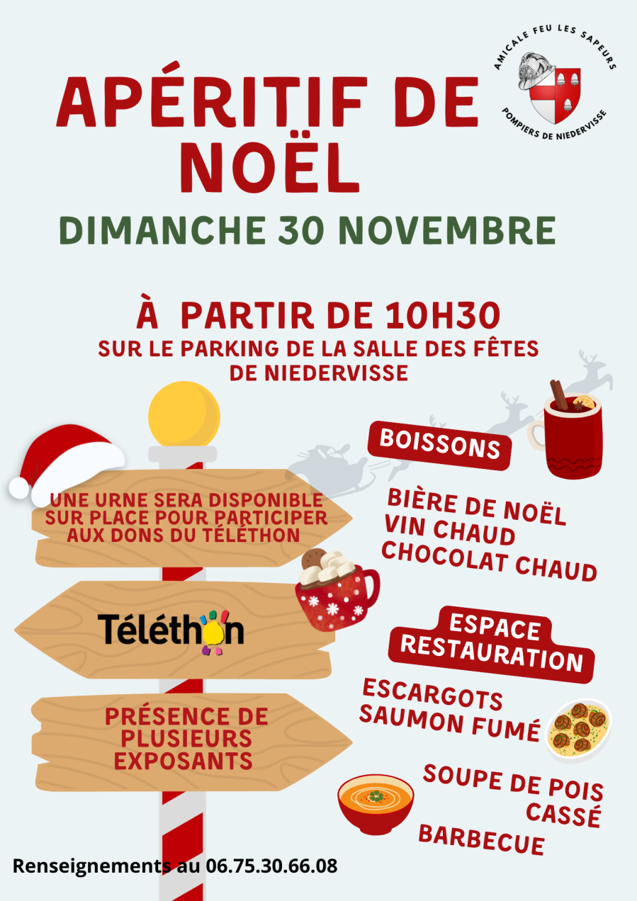 L’Amicale "Feu" les sapeurs pompiers vous invite à son apéritif de Noël le dimanche 30 novembre à la salle des fêtes de Niedervisse 🎁