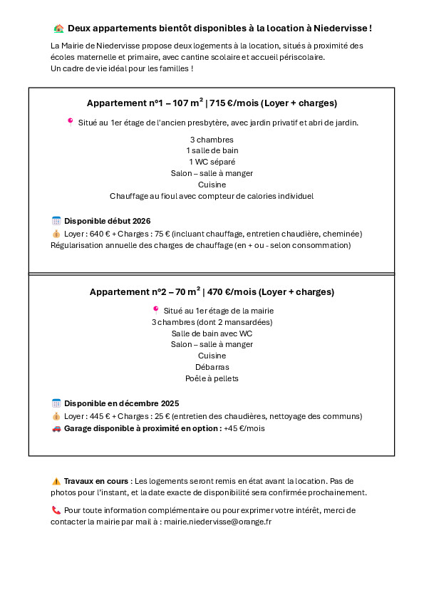 Nous vous informons que la prochaine permanence pour la distribution des sacs de tri aura lieu le lundi 27 octobre 2025, devant la salle communale de Niedervisse de 15H45 à 17H00. ♻️