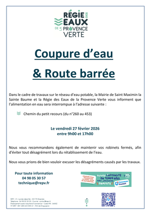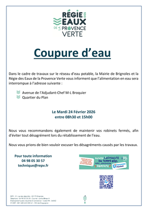 En raison de la rupture d'une canalisation rue Paul Blanc, le service de l'eau potable sera interrompu :