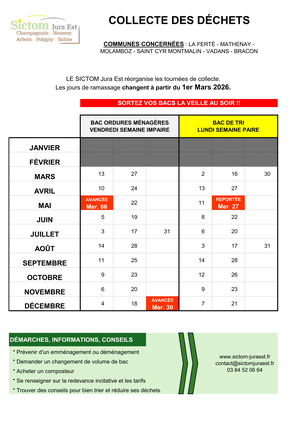 Veuillez trouver ci-joint le calendrier de collecte applicable à partir du 1er mars 2026.