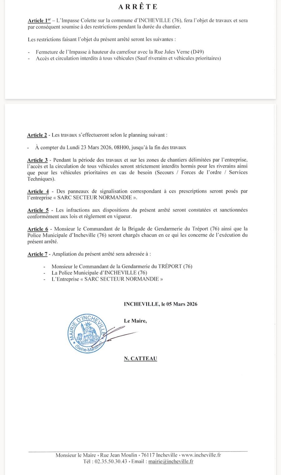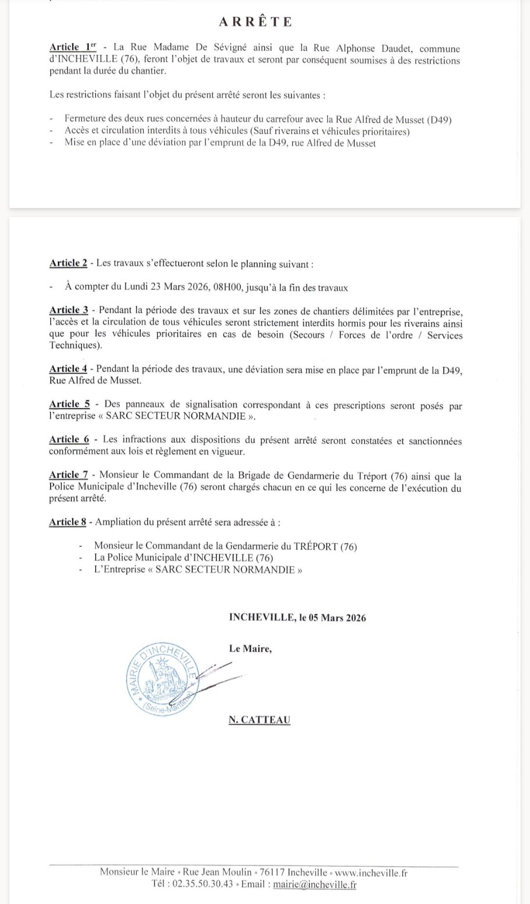 ● M CATTEAU Nicolas est Maire d'INCHEVILLE (au centre sur la photo).