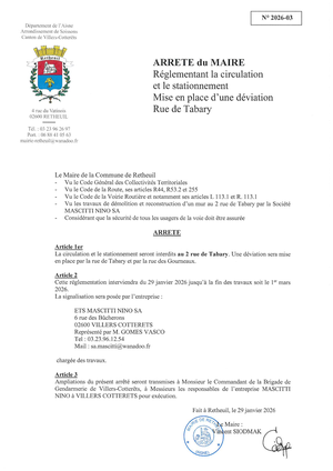 La rue de Tabary sera barrée au niveau du numéro 2 pour travaux du 29 janvier 2026 au 1er mars 2026.