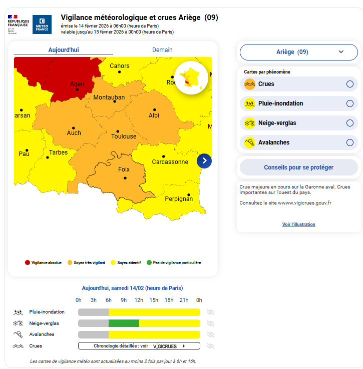Bulletin émis le 14 février 2026 à 06h00, valable jusqu'au 15 février 00h00