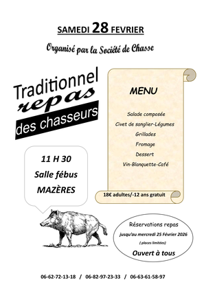aura lieu le traditionnel repas des chasseurs (ouvert à tous).