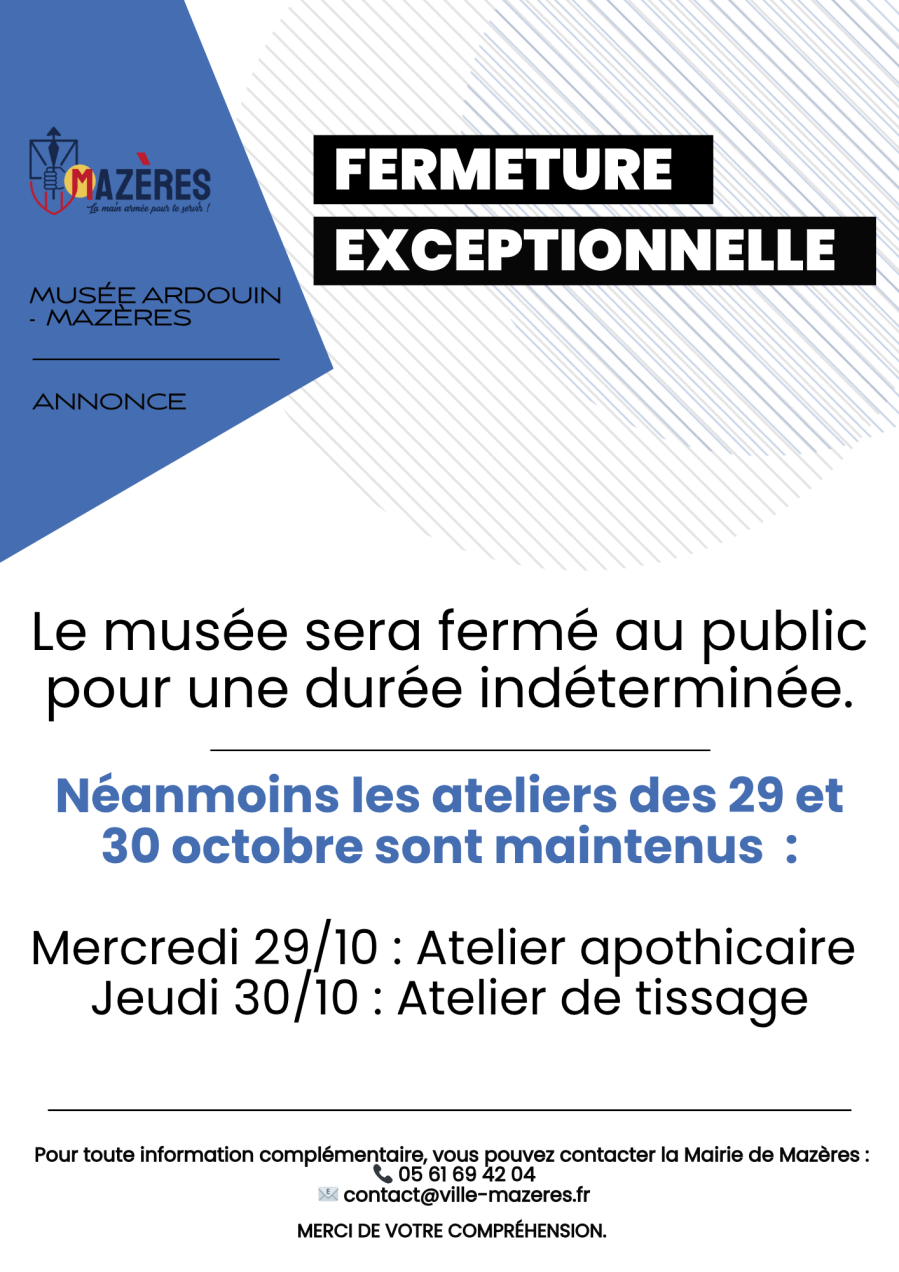 Pour toute information complémentaire, vous pouvez contacter la Mairie de Mazères :