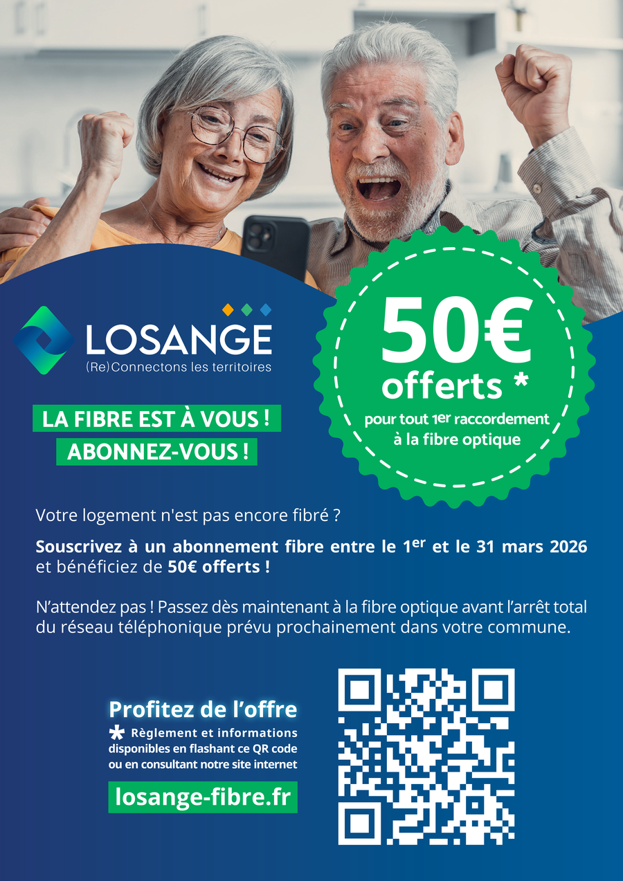 Dans le cadre de la transition vers la fibre optique, Losange met en place une opération promotionnelle destinée à encourager le passage au Très Haut Débit sur la commune.