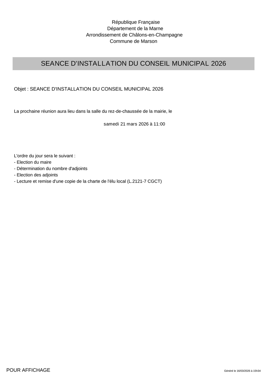 La prochaine réunion du conseil municipal aura lieu dans la salle du rez-de-chaussée de la mairie le samedi 21 mars 2026 à 11h00.