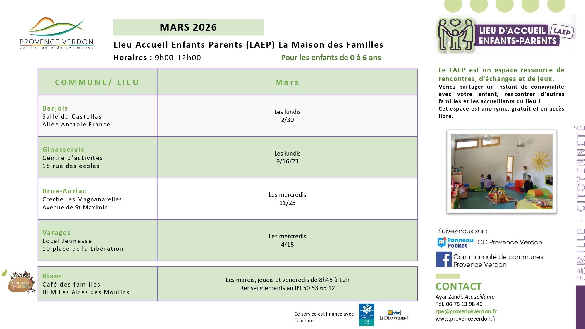 Les inscriptions se font au 06.78.13.98.46 ou par mail à rpe@provenceverdon.fr.