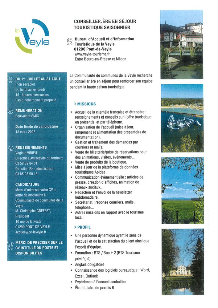 Vous pouvez retrouver d’autres permanences à Étrez (L’Écrin), Pont-de-Vaux (Mairie), Coligny (mairie) et Belley (Centre Social).