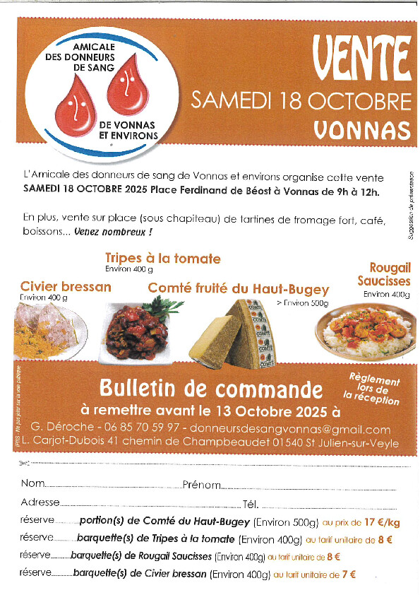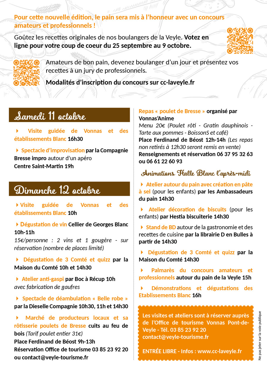 Vous préférez le déguster sur place en réservant votre repas Poulet de Bresse auprès de Vonnas' Anime au 06 37 95 32 63 ou 06 61 22 60 93. Tarif 20€