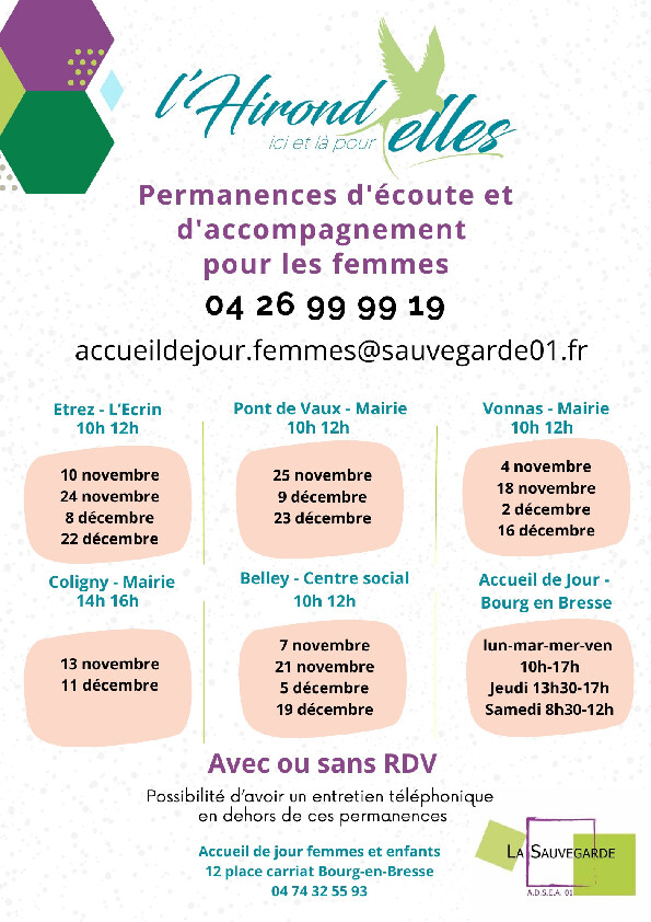 ou accueildejour.femmes@sauvegarde01.fr