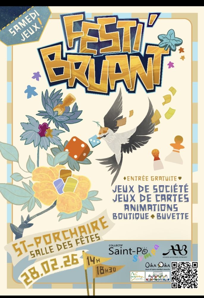 Les ateliers artistiques du Bruant organisent , un après-midi jeux de société dans la salle des fêtes de Saint Porchaire avec la présence de "Oîka Oîka" et l'association "1001 MONDES". Ils proposeront des stands découverte des nouveaux jeux du marché et animeront des tables de jeux dédiées.