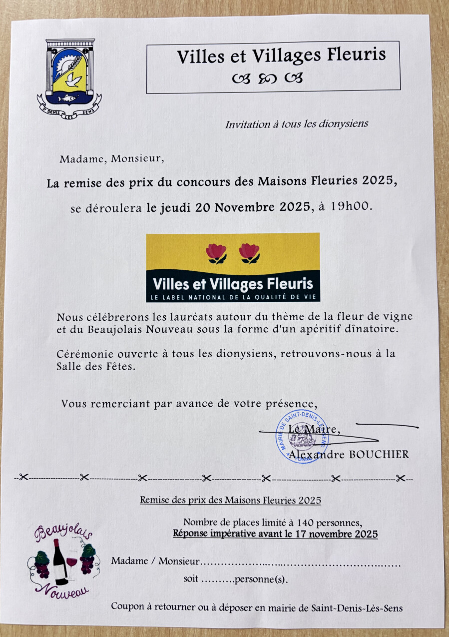 La cérémonie de remise des prix du concours des Maisons Fleuries 2025 se déroulera le :