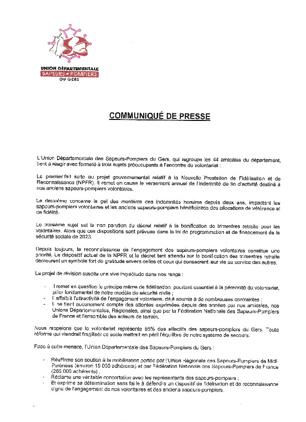Soutien de la commune de Mouchan et de ses élus aux centres de secours et aux pompiers volontaires