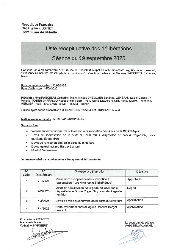 Le secrétariat du Syndicat Mixte des Eaux et de l'Assainissement de Nibelle Nesploy