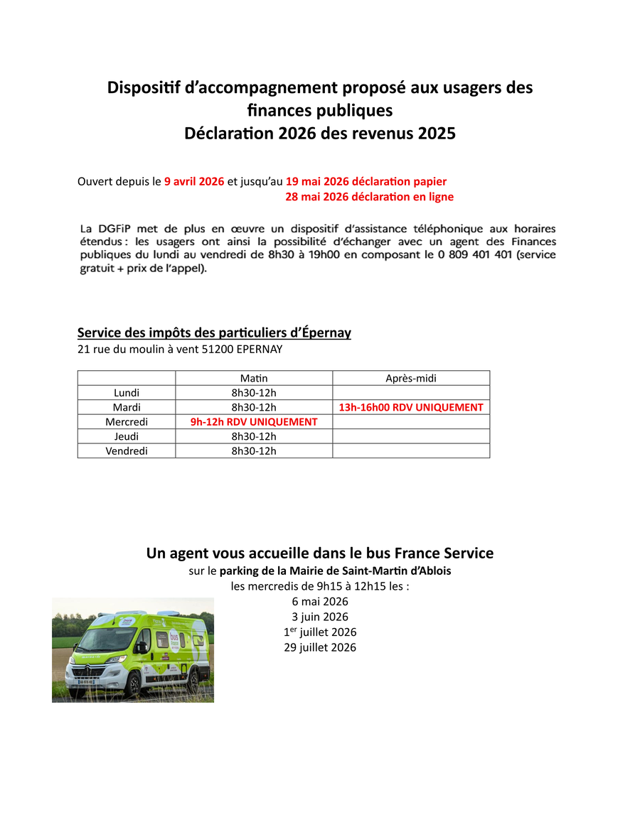 à compter de ce jour, l'arrivée du bus scolaire concernant les primaires de Saint-Martin d'Ablois sera à 17h23 devant la mairie.