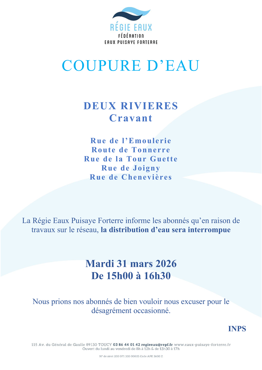 L'heure de remise en service est approximative, elle se fera sans préavis.