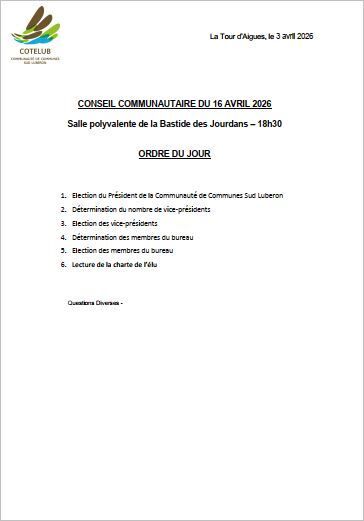 Le prochain Conseil Communautaire