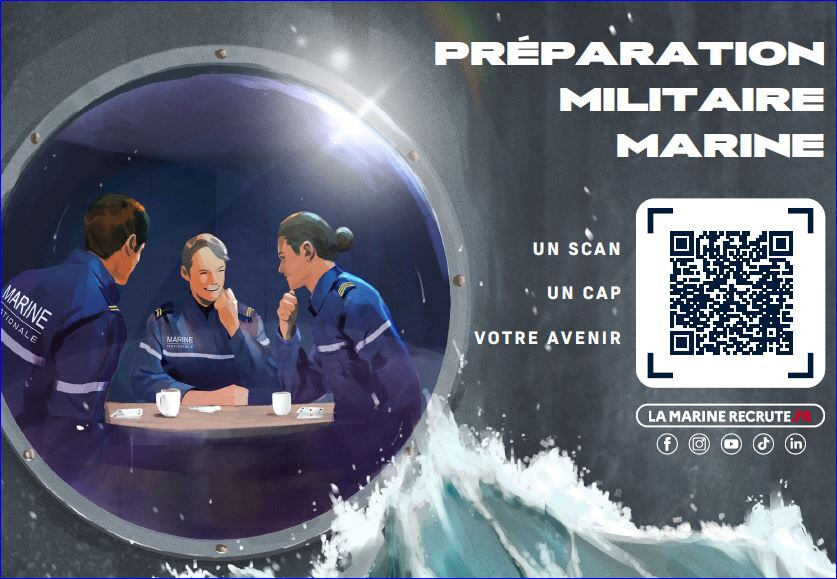 Le CIRFA Marine vous informe que les inscriptions à la Préparation Militaire Marine (PMM) du Vaucluse sont désormais ouvertes via la plateforme Démarches Simplifiées (QR Code ci-joint).