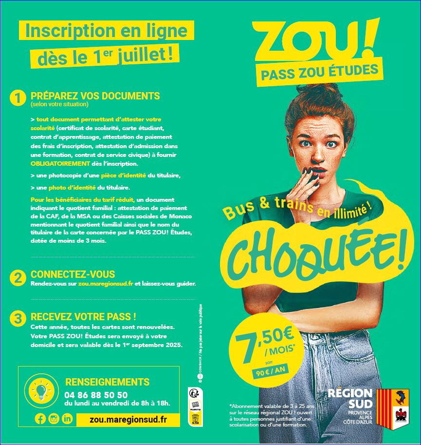 Lien : Acheter un PASS ZOU ! Etudes 2024/2025 - Votre réseau ZOU