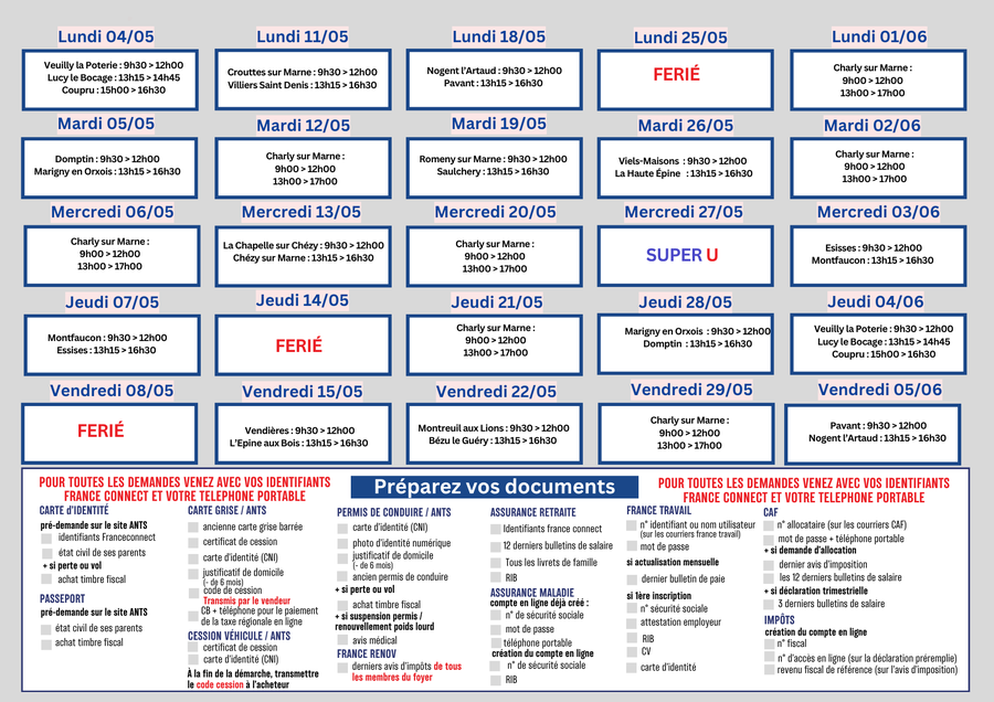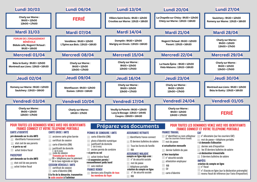 L'accueil de loisirs aura lieu sur la commune de Chézy Sur Marne du 13 au 24 Avril 2026.
