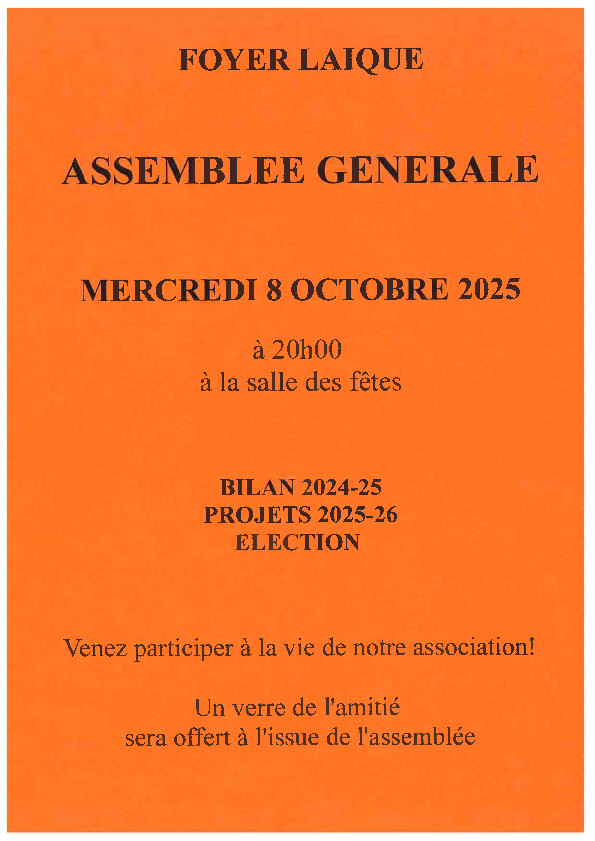 Cette assemblée sera suivie d'un apéritif d'honneur, puis d'un repas convivial auquel vous êtes toutes et tous conviés, bénévoles, partenaires et invités.