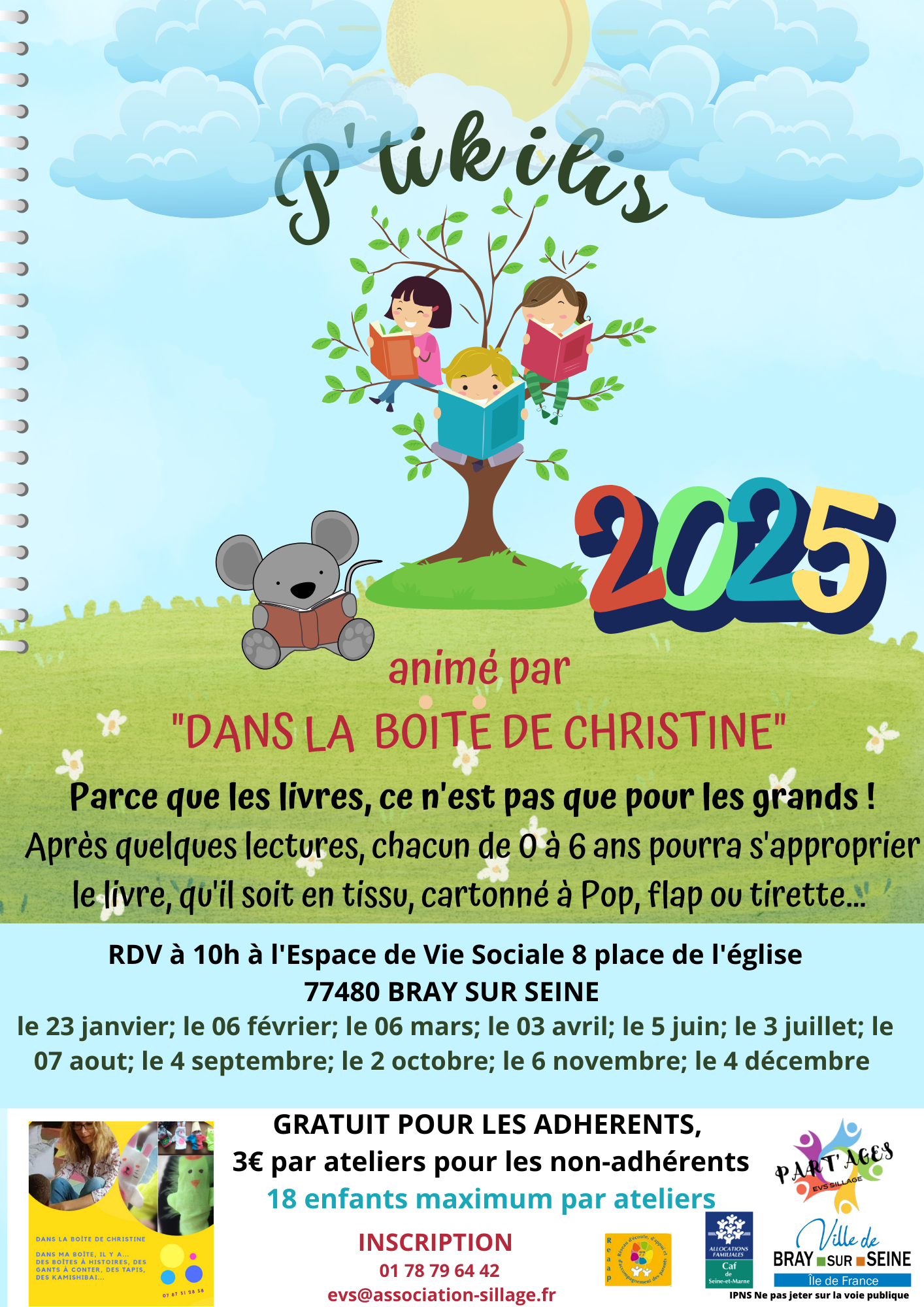 P'tikilis, le jeudi 4 décembre à 10h. Venez partager avec votre enfant un moment de lecture et de jeux avec la participation de « dans la boite à Christine »