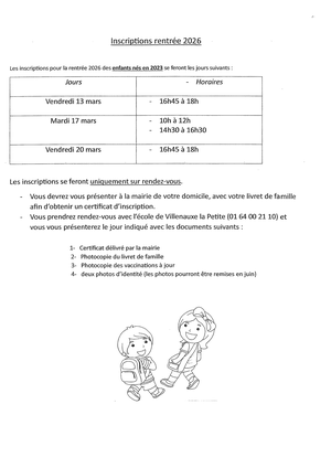 Inscription rentrée scolaire 2026