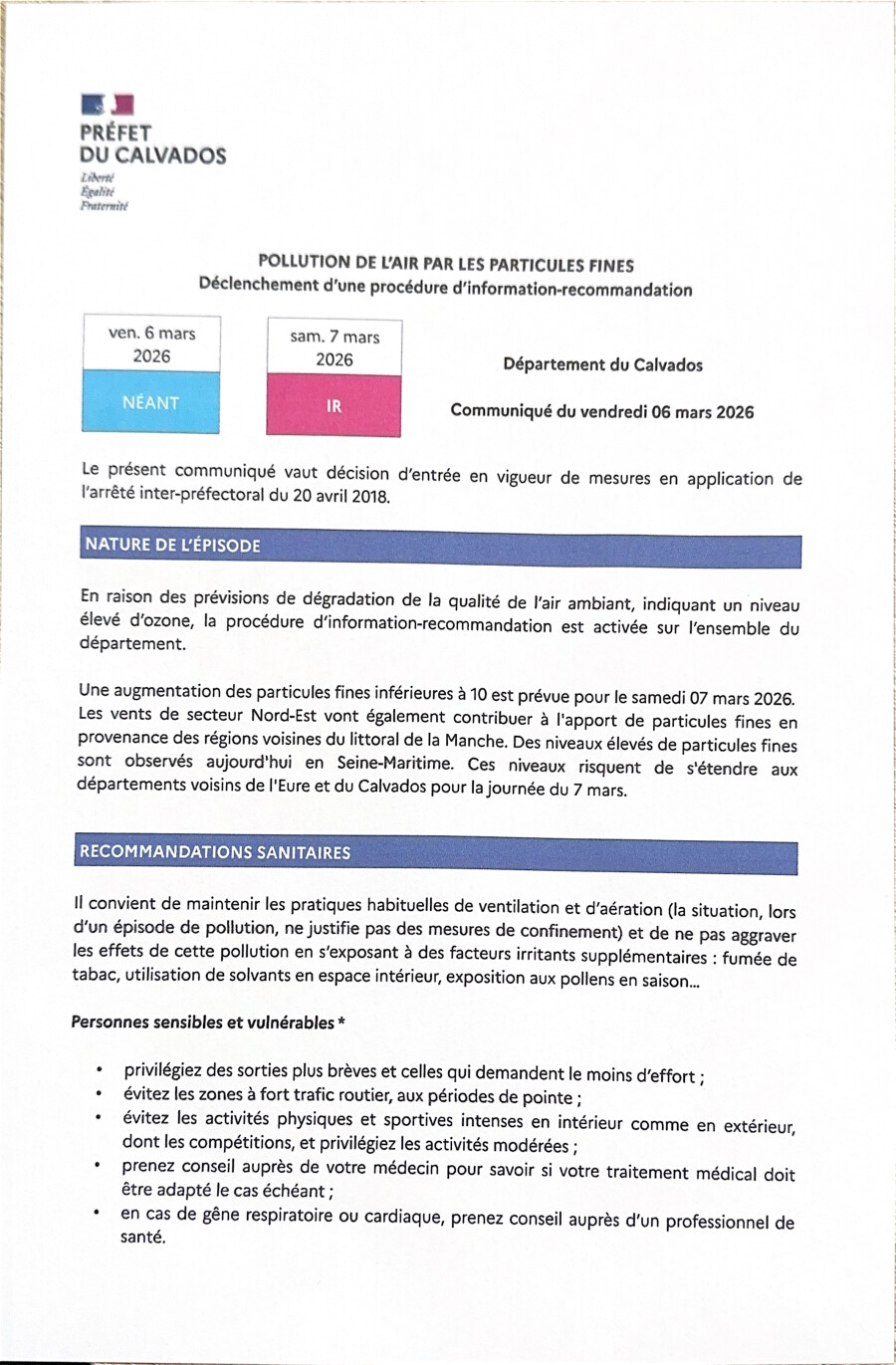 Veuillez trouver ci-joint une alerte de la préfecture concernant une pollution aux particules fines.