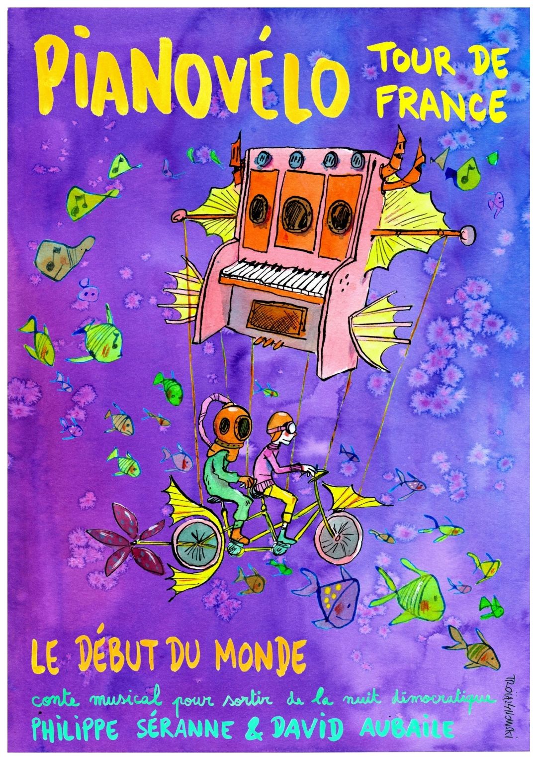 Après leur tour de France à vélo en 150 étapes, tractant un piano de 250 kg, Philippe Séranne et David Aubaile proposent un concert poétique et engagé, mêlant musique, textes puissants et récits de liberté. Une heure de joie, de révolte et d’espoir.