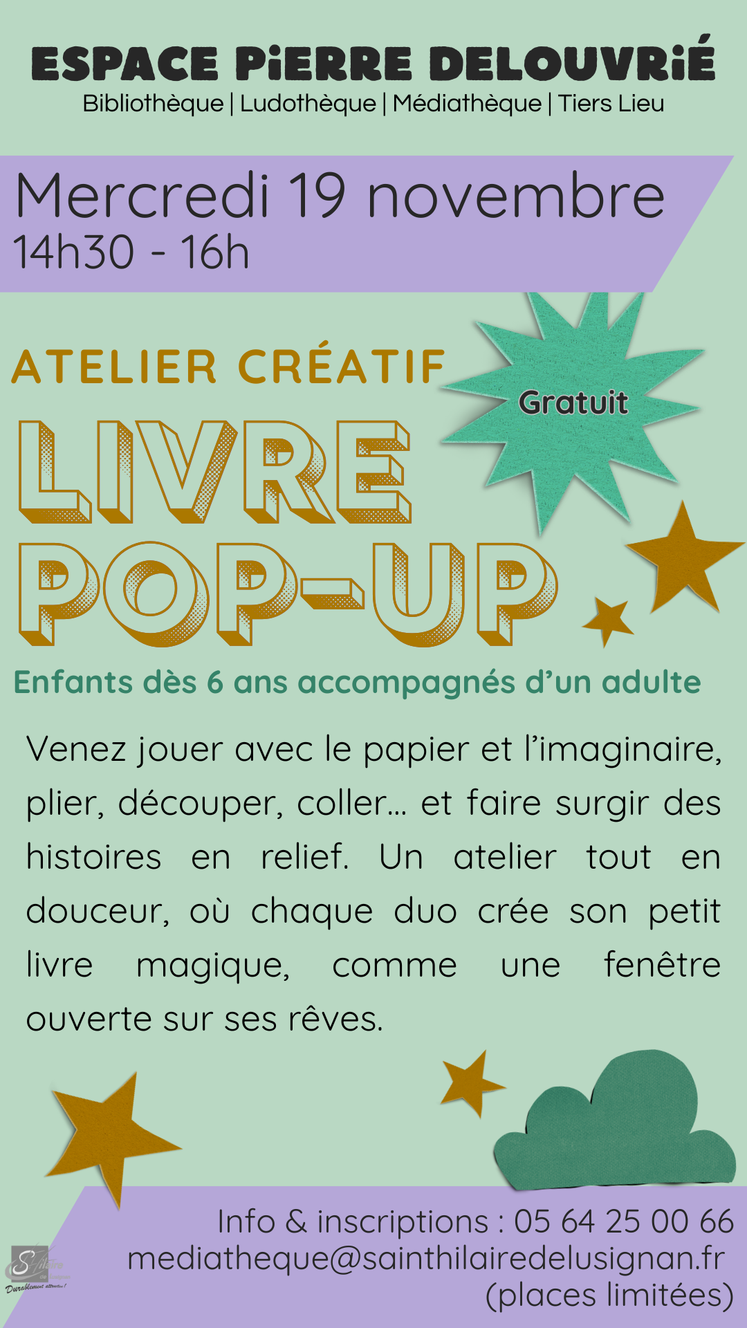 📅 Mercredi 19 novembre de 14h30 à 16h 📍 Espace Pierre Delouvrié, 51 rue de l’école