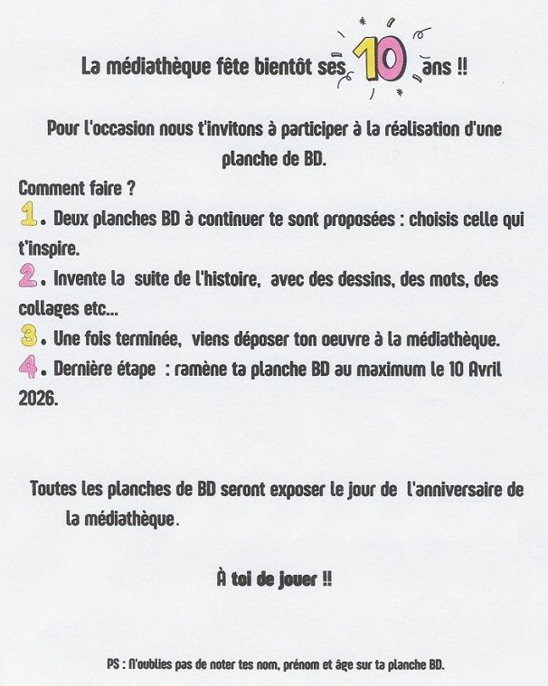 Nous vous communiquerons les résultats de ce défi le jour de la fête des 10 ans de la médiathèque, samedi 6 juin 2026