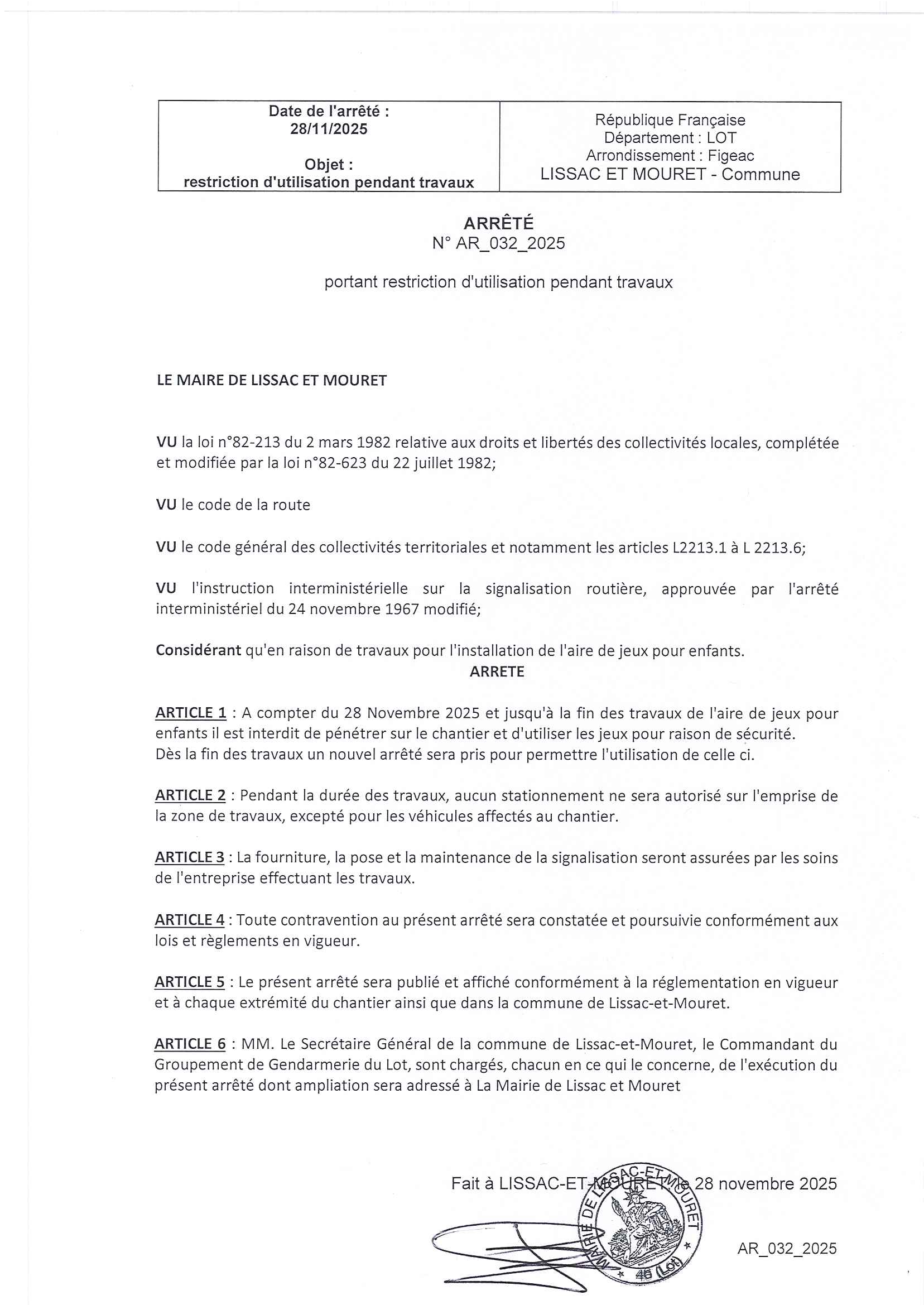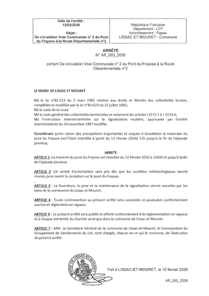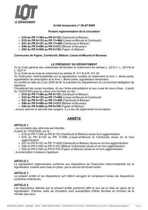 Je vous prie de trouver ci-dessous un arrêté temporaire du Département, de circulation concernant les communes citées en objet.