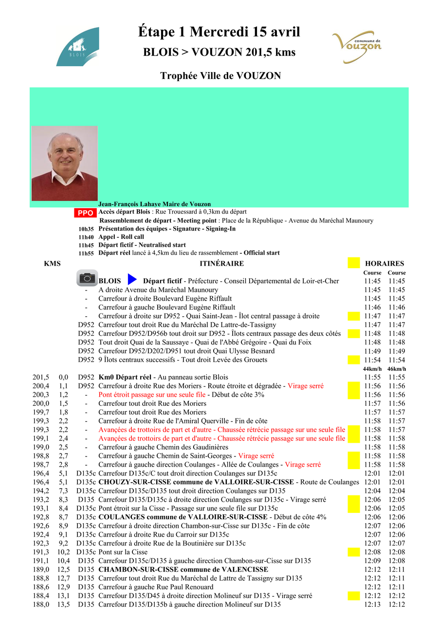 Il empruntera la RD 58 et 65 : rue du Petit Herbault, Place Bernard de Montebise, rue Saint Denis et route de Mesland.