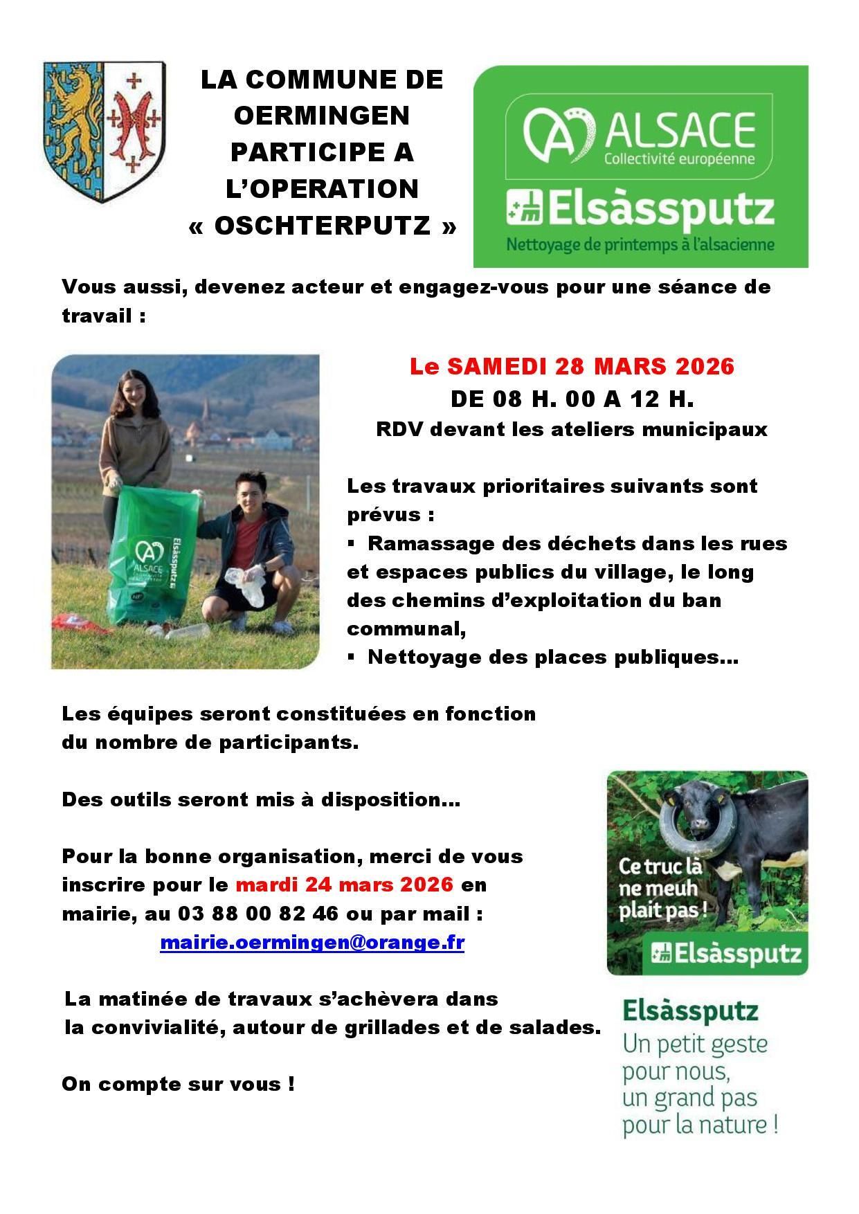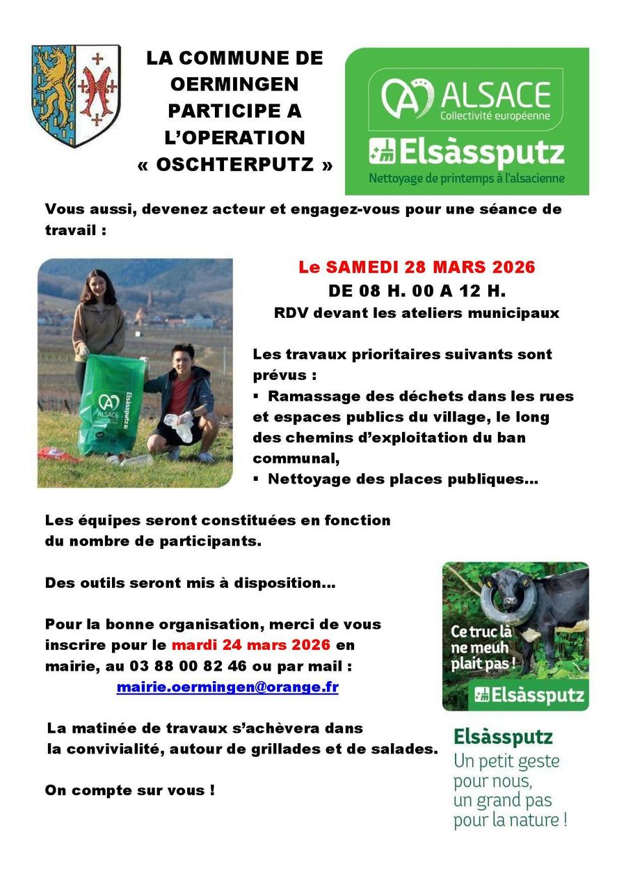 Rendez-vous samedi 28 mars 2026, de 8h à 12h, devant les ateliers municipaux.
